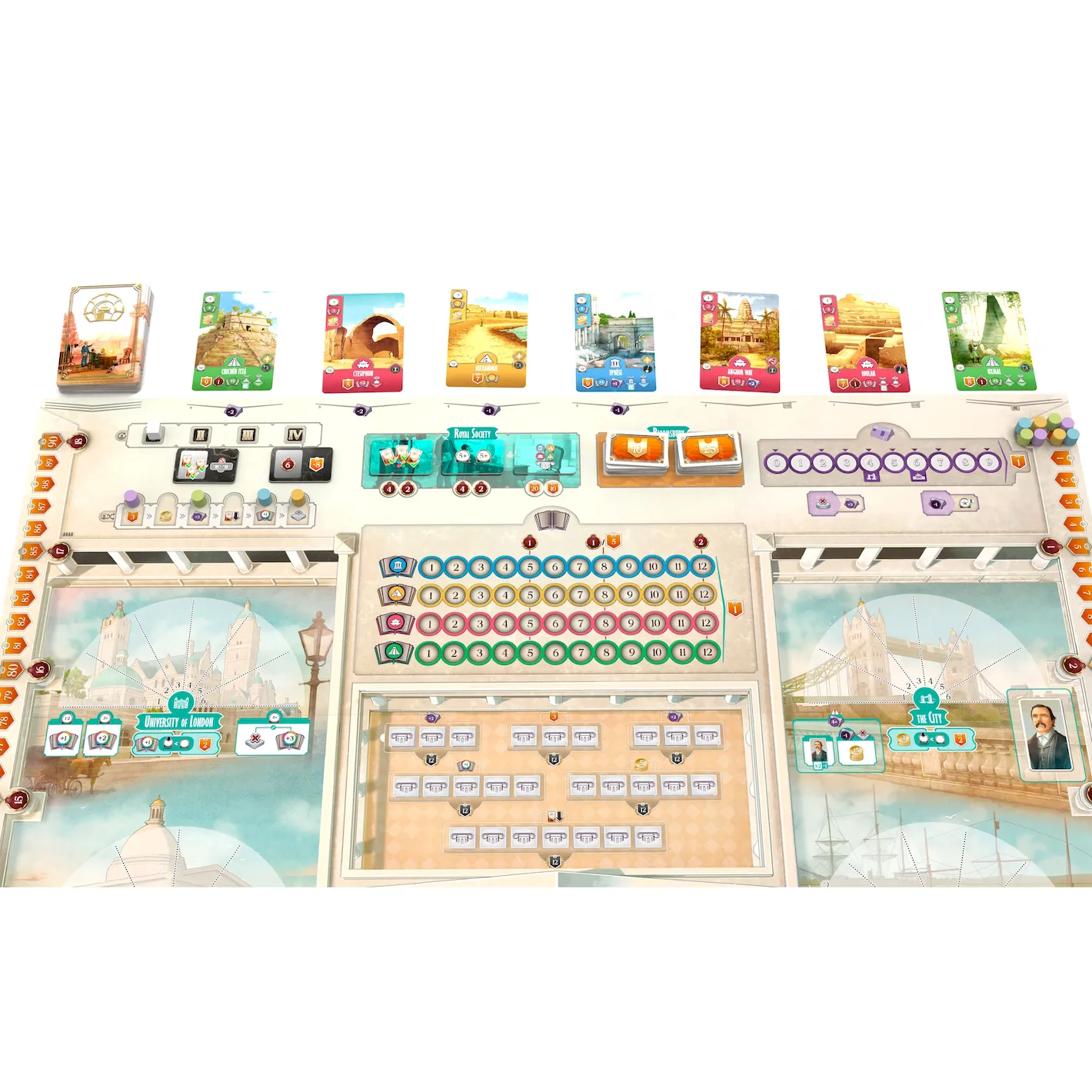 | Contenu | 1 plateau Londres, 1 Marqueur Année, 52 tuiles, 60 jetons Relique, 4 sacs Région, 48 cartes Expedition, 44 cartes, 96 jetons £, 4 plateau individuels, 12 pions Explorateur, 12 cubes Expertise, 60 disques Société, 12 marqueurs Société, 9 cartes Automa |