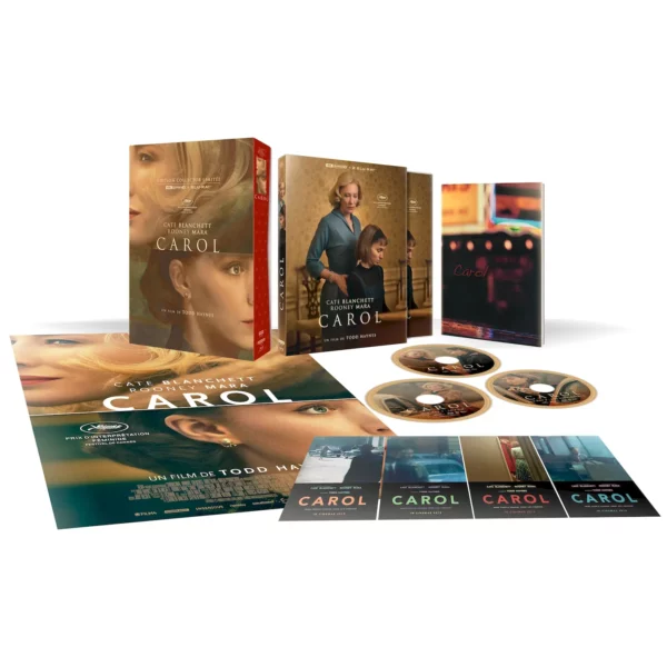 Contenu | Le film Carol en 4KUHD et HD + 1 Blu-ray Bonus + 1 livre de 100 pages + 5 cartes postales + 1 affiche. |